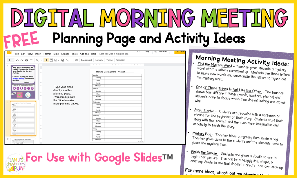 Morning Meeting Activity Ideas Team J S Classroom Fun